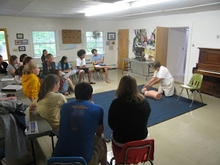 Then back at camp Nurse Ellenor performed what has become a rite of summertime, the annual CPR lesson. We all practiced breathing into the mouth of the rubber dummy and afterwards some of the counselors took him out to The Outland Disco to see The Boogies play at rocking set.