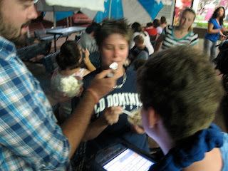 So tonight was “sugar night” at camp. Here we see proper counselor form as Jordan feeds Vera while she feeds Hannah. Keep those sweets coming, oh yeah!