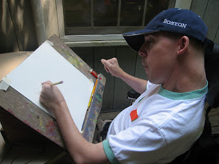 And here’s Dick creating an artistic masterpiece out on the main cabin porch.