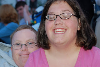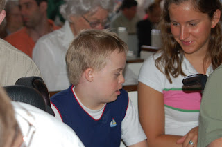 Yes, it was a fine weekend here at Camp Jabberwocky. We had some nice visits from old friends and fun times with new ones. Sarah P. came by and Shirley was so happy and surprised she nearly flipped out of her wheelchair. The Ho Family came for the weekend as well, with their latest addition, little Larissa Ho. Here’s Shirley holding the little Ho: