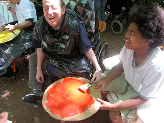 We woke up today and realized that the July 4th parade is only two days away.  Oh my!  So we all spent the morning painting various items for the big day.  Many of us painted more than just the things we were supposed to paint and we spent a lot of time washing that off as well.  Here’s some pics of the artists at work:
