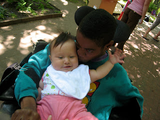 Actually, Elsie was the second youngest person at camp since Larissa Ho is a month younger, but sadly she and the other Ho’s left today. The two little girls did get to hang out together a bit in the morning though. This is how we carry babies at Jabberwocky: