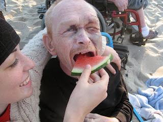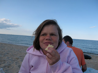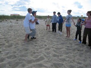 After lunch we had a long rest and then bundled up for an afternoon beach trip. We arrived around 4pm and commenced a rousing game of “Red Rover” during which many feet got run over by wheelchairs and a lot of sand was consumed. Here’s some pictures from that heated match: