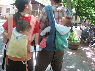 Actually, Elsie was the second youngest person at camp since Larissa Ho is a month younger, but sadly she and the other Ho’s left today.  The two little girls did get to hang out together a bit in the morning though.  This is how we carry babies at Jabberwocky: