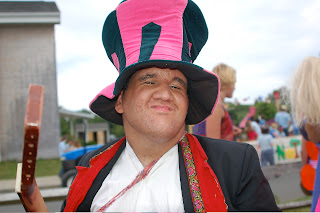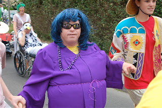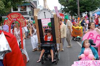 Before the parade began we were awarded the “Special Prize” which we thought was sort of a poor choice of prizes to give to Camp Jabberwocky, but perhaps we really are special, in the best sense of that word. We certainly weren’t boring, that’s for sure. You should have seen Hellcat, our 94 year old founder, ramming pedestrians with her motorized scooter. She even got tangled up with one of our wheelchairs. she kept yelling at us all, “Get out of the way!” There was no stopping her.