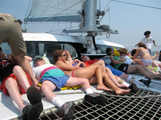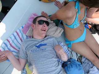 We fit pretty much everyone in camp aboard the big boat, which was a lot of fun. As soon as we got underway we all stripped down to our sexiest bathing outfits in order to catch some cancer-causing rays.