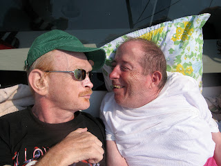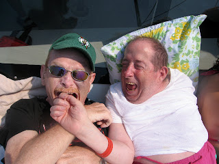 Back at camp we had an amazing surprise waiting for us. World famous magician Walter Childs was there to perform a magic show after dinner. Those of us who had seen his show every summer for the past twenty years were perhaps a little unaffected by his wondrous illusions, but others were thrilled. In fact, some were a little too thrilled. It turns out that several of the autistic folks here harbor a deep fear of balloons. The problem was that, unbeknownst to us, Walter had a big balloon finale planned during which he released a whole bunch of screeching balloon animals. This terrified the balloonaphobes and sent them running out the doors into the night. Walter was a little confused, but we’ve come to expect such things here at Camp Jabberwocky. Jo Jo talked to those who were frightened and we all had a little laugh about it later on. No more balloons though! Thanks Walter!