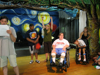 We spent much of today putting the final touches on our production of Charlie and the Chocolate Factory. We saw Ms. Patricia Neal this afternoon and she said she was coming tomorrow so that ought to be interesting. Not only is she an academy award winner, she was married to Rohald Dahl, the author of the book. Hopefully no one will be too offended by the liberties we have taken. Silly jigs indeed!