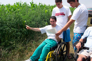 Now, when you look at this photo, you are probably thinking we are reaching the end of our maze adventure. But, in looking glass manner, you must turn your mind around to see that we are really dragging the chairs backward through the maze. It just adds to the confusion and the fun when you can’t see the ruts before you hit them. We have very determined counselors. Everyone went through the maze. Whew, that was tough work. We need to get to the beach. Now.