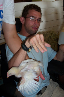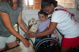 After breakfast, we headed out to the Farm Institute to see the animals and try a hayride. Here we are figuring out how to fit everyone on that little wagon. We decided 2 trips would make sense, and everyone got to tour the fields in style. Luckily we loaded the chairs in a pick up, or we would have been in big trouble when we were dropped off at the corn maze.