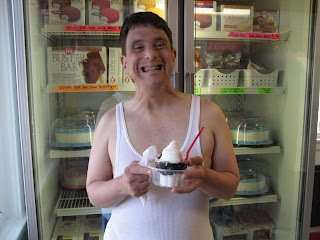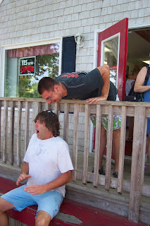 See what happens when you fall asleep on the beach? Nathan seems content with his pillow and cool drink.