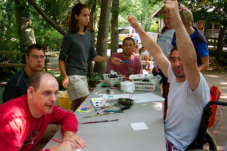 Our morning activities were print making, croquet, and pottery. We are working on pieces for an art show next summer. And we’re having lots of fun.