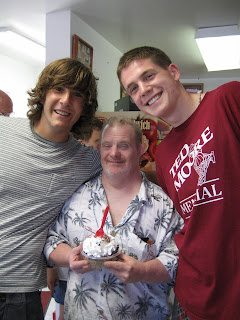Gracie, Cy, and Peter smile after their treat.