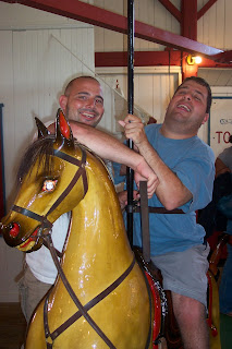 This morning we went to the Dobbies (Flying Horses) instead of having activities. Campers and counselors grabbed the rings as we sped along on our trusty steeds. Another group went horseback riding on the real things.