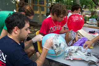 After an inspirational music hour, we started the morning activities. We created pinatas to use at our pirate carnival on Tues. We made a great mess and only popped a few balloons. We’re not sure how pinatas are linked to pirates, but we like them so they got included. We also had some wild and crazy baseball games on the hard top. The third activity was watercolor painting. The results were amazing.