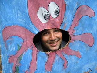 Justin prepares to flip the pirate onto his head. (Hey, it sounded like a good idea at the time.)