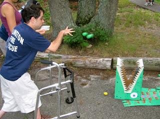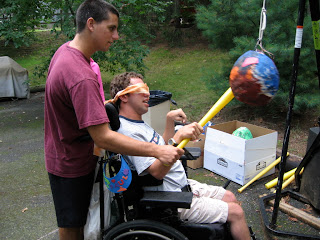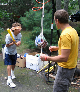 Paul bashed the pinata and candy went everywhere. He laughed so hard you could hear him all over the hardtop.