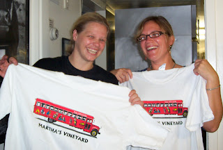 It was a quiet afternoon here. Some went to the beach, some watched a movie here, some napped. The Vineyard Sound came to sing for us before supper, but they didn’t get any. (Guess they were double booked tonight.) Thanks guys, we had fun watching your antics and singing along as if we knew the words. After dinner, we rode the flying horses again. Paul got the brass ring this time, a good way to end his stay.