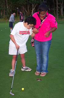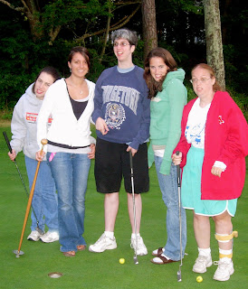 And finally the girls finish their golf course, I bet it was fun, but there are some of us still waiting in line to try and polish our game.