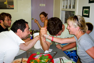 Nothing like a good old fashioned arm wrestle. Wait a minute, Zach was fighting two people? He thought Kristen had just been hitting the gym a lot lately.