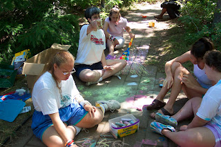 The morning’s activities included baseball, pottery, and chalking up the camp.