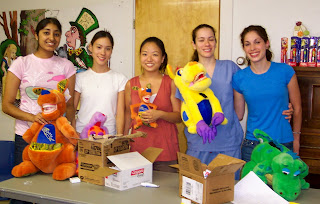 Here are the dental students who came. They gave demonstrations on brushing and flossing, and gave us free stuff. We love free stuff. We may even use this free stuff, which I guess is their point.