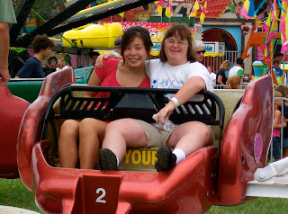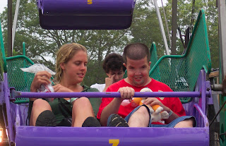 After quick showers, and more food, we hurried off to the Agricultural Fair. There were animals, rides, food, and games. We did everything, and no one got sick. A few of us were dizzy after the rides, but the campers just wanted more.
