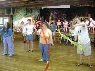 The campers practiced waving “Caution” and “Do Not Enter” streamers for their show on Tues. (I’m not sure what song goes with that movement, but we’ll soon see)