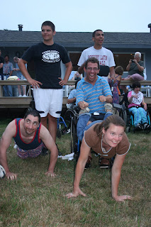 Here’s the wheelbarrow/wheelchair race. Don’t run over Caitlin!