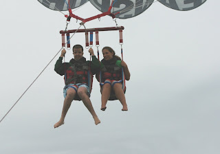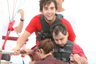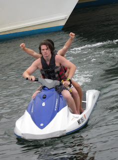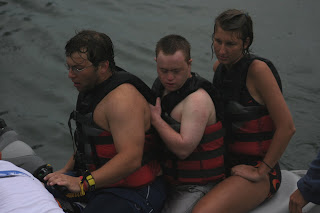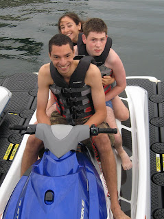Anyway, many of the counselors and campers went VERY early on this cloudy/cold/rainy morning to fly through the skies and bounce over the waves. We had one green-faced counselor who finds para-sailing not his cup of tea, and another who would like to practice with a jetski BEFORE he tries the waves again (not that we’re counting, but after dumping his ski 4 times he and his crew gave up) By the way, we had a glorious time, and the photos cannot begin to catch the spirit of our group. We shivered all the way home, but with hot chocolate, showers and a movie, we were soon content. Our thanks to the para-sailing guys Jesse, Alex and Nick for their concern and eagerness to make sure the campers were safe and having a ball. We would also like to thank the jet ski safety crew, who along with a rescue boat, successfully fished a few of us out of the drink. It was a most splendid way to end our second week. The other photos are of our dance we held tonight as many of the campers and counselors celebrated their last night at camp.See you next year. You were magnificent!