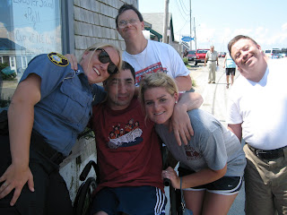 This afternoon (morning follows, I can’t get the blog in order anymore, and it’s driving me nuts) a small group did a fly-by to Menemsha. They visited The Bite, and got free french fries. Gracie met up with her mom, what a nice surprise! They also found Tina (who used to be a day counselor here) who is now a police officer. (Not that we would ask her for any special favors, heh heh.)