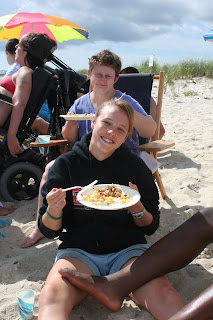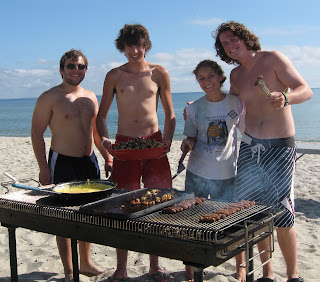 We had a scrumptious breakfast on the beach this morning, (thanks Michael, Netza, Drew and Peter – see photo below – somewhere) and enjoyed some time in the brisk water. Not everyone went in (some people don’t believe in swimming BEFORE lunch), but all enjoyed the scenery and sound of the waves.