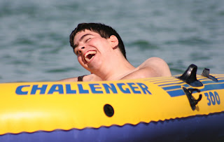 This afternoon we had a special treat – kayaks !!! We had much fun trying to balance campers and counselors without falling in. Some of us did better than others, but Kyle, Jeremy, and Daniel were good sports about being dumped into the drink. Life jackets are wonderful inventions, and we used them well. (Sorry about the repeat fishing photo, but I can’t find it to delete it)
