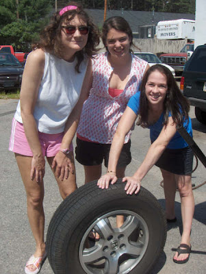 The day was not without adventure. First, the train that Maggie and Brynn were on ran late. Then Sully, Stef, Maggie, and Brynn got stuck in some heavy traffic. And THEN – when they were about 5 minutes away from my house on the way to pick me up… the car got a flat tire.
