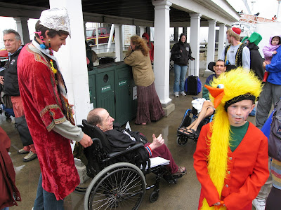 But it wasn’t! There were happy, wet faces waiting for us there. We assured the parents we’d take good care of their sons and daughters and grabbed them before they could protest and then we hustled them back on the ferry where a bumpy ride would take us all back to the land known as Jabberwocky. On board the ship, old friends were reunited…