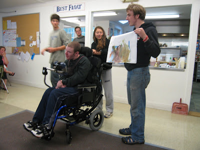 Paul challenged Peter and Miles to a reverse push-up contest, which turned into a floor dance-off.