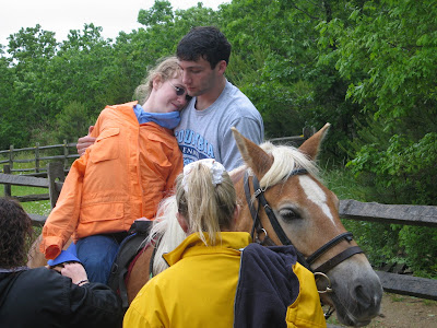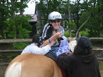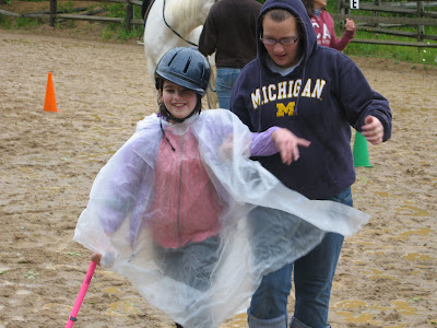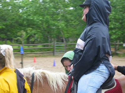 Our first full day here at Jabberwocky was a wet one, but we don’t care about that. Actually we do. We wish the sun would come out so we could go to the beach and get hot, but until then we’ve got horses and rain ponchos too. Before we ventured out into the wild, we got a lesson on how not to scare horses: