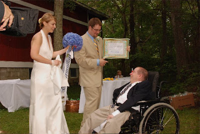 Yesterday was a very wonderful day for all of us here at Camp Jabberwocky. Jonathan Wolf and Mandy Adams got married right here at camp in a beautiful ceremony in front of 300 people, including the entire camp. We always say that Jabberwocky is like a big family and events like this prove that it is so. Jon and Mandy met at camp and fell in love, like many Jabberwockians before and after. It’s quite a romantic spot, truth be told.