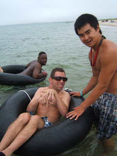 After lunch, we decided, despite cloudy skies and Fogey’s protests, to go to the beach and the Dobbies (flying horses)