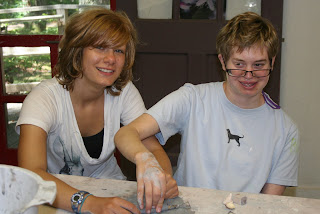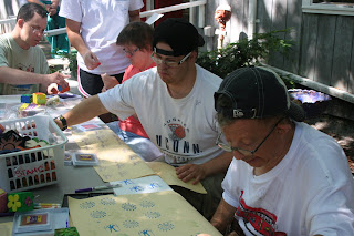After a great storm last night (great for sleeping, that is) the sun came out and the humidity was tolerable today. (We didn’t stick to each other anymore.) The morning activities included pottery (Yay July counselors!), Stamping, and planning for Studio Night .