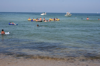 The storm brought all this yucky seaweed into shore, so everyone went out to the sandbar, far from any camera I have.