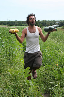 Here’s our illustrious tour guide bringing us gifts of squash and zucchini from the wild fields of Martha’s Vineyard.
