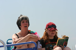 Reading at the beach is controversial, but Stacy made a request, and our campers get what they want.