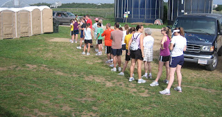 Here is everyone waiting for a turn at my kissing booth (Its behind the port-a-potties).