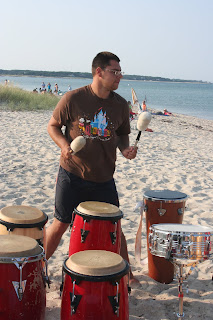 Next we went galumphing to the beach for drumming with Rick. Some of us took advantage of this trip to take a much needed rest break.