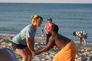Our first Drumming and Dancing and Eating on the Beach. Is that you Katie?