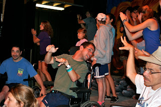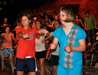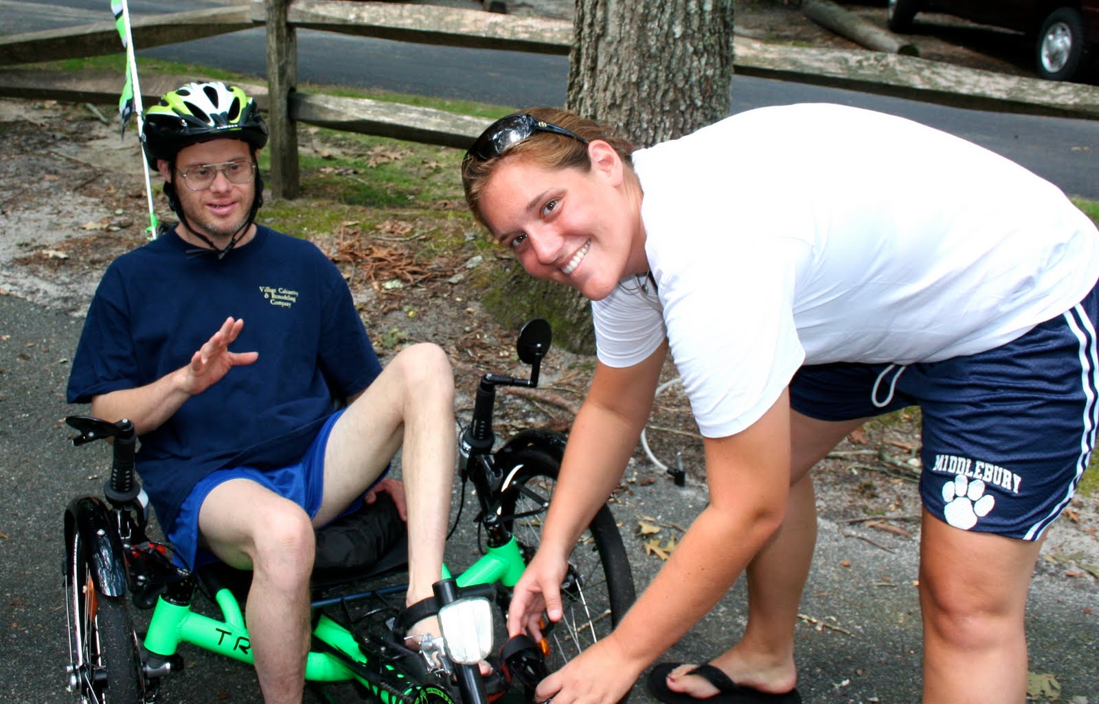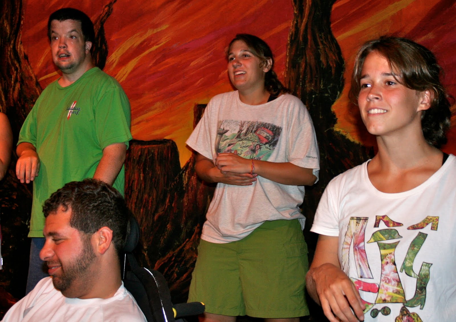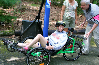 This morning during play practice we had a special treat. A group of new friends brought some recumbent trikes for us to try. Counselors and campers had fun racing around