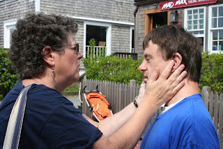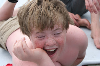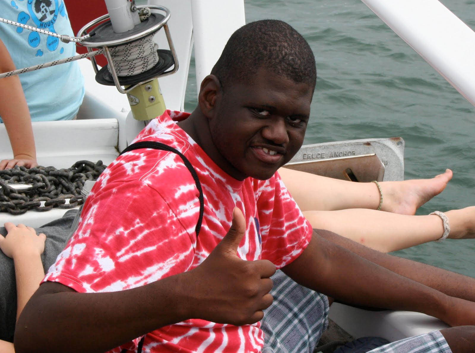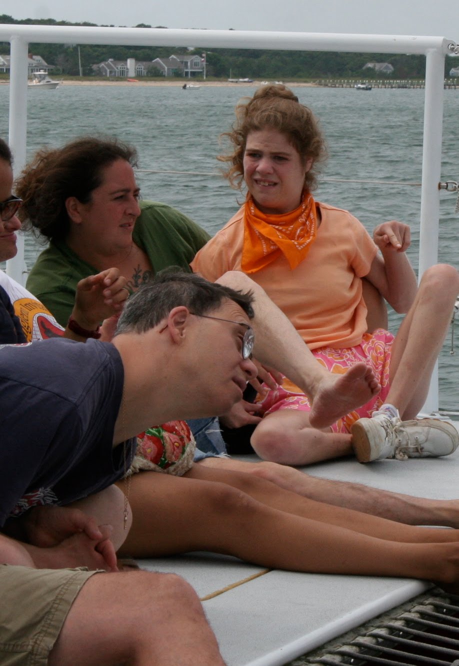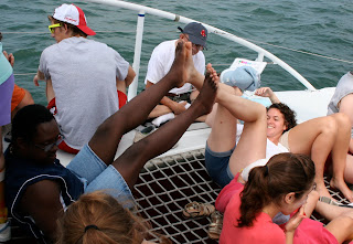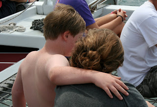We were able to put up the sail, and had a cold, watery surprise when we hit the wake