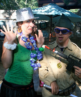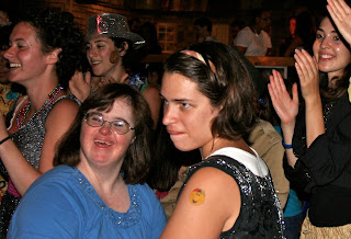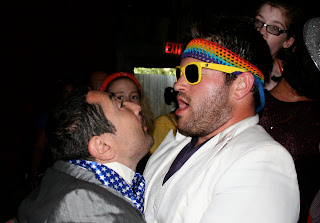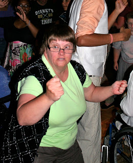 Molly and Kirk (love the pearls and glasses) enjoy a dance.
