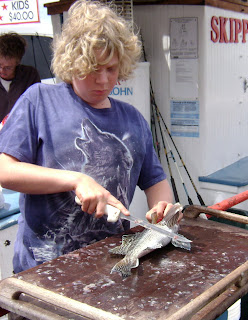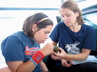 Jess and Alex check out this sea urchin on their Chappaquiddick tour.